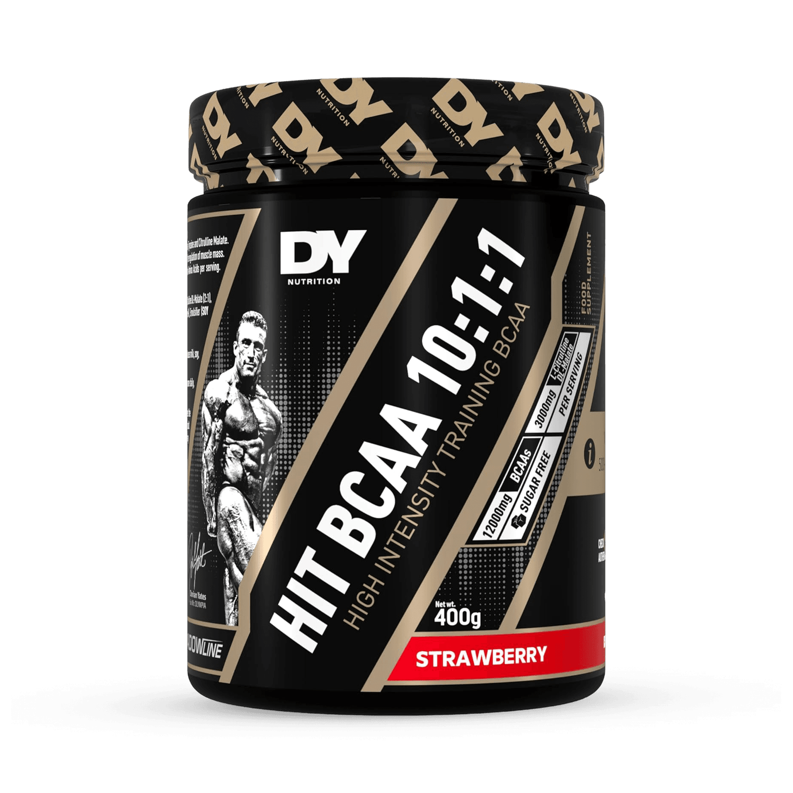 DY HIT BCAA 10:1:1 400g Strawberry es un suplemento de BCAA diseñado para deportistas que buscan recuperación acelerada, menor fatiga y mantenimiento del tejido magro. Su alta concentración de Leucina (10 partes) frente a Isoleucina y Valina (1:1) favorece la síntesis proteica y el entorno anticatabólico en sesiones intensas de fuerza, cross training o resistencia.