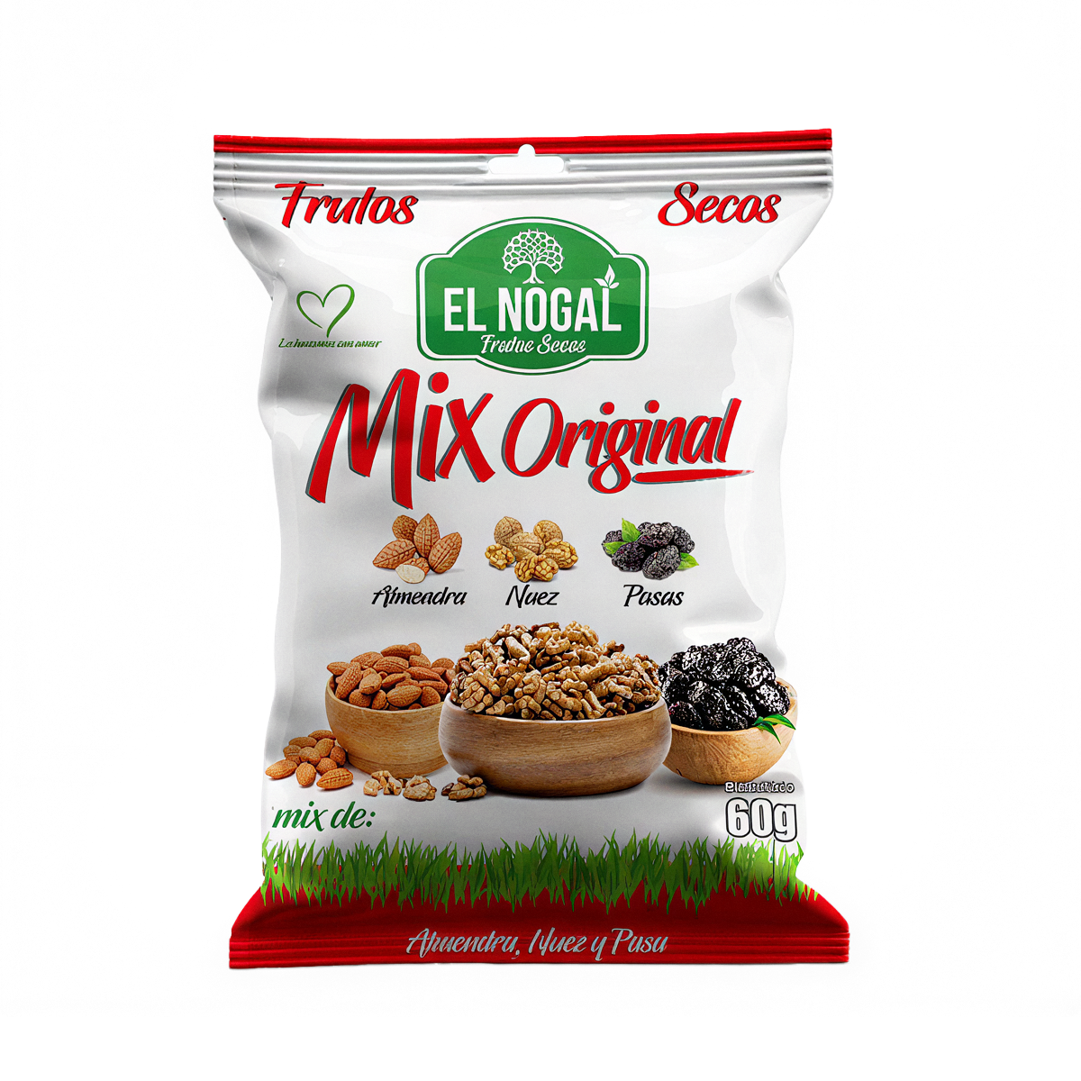 El Mix Original El Nogal es una mezcla simple, natural y deliciosa, pensada para quienes disfrutan del sabor auténtico de los frutos secos. Contiene una cuidada selección de almendras, nueces y pasas, combinadas para ofrecer un equilibrio perfecto entre crocancia y dulzor natural.