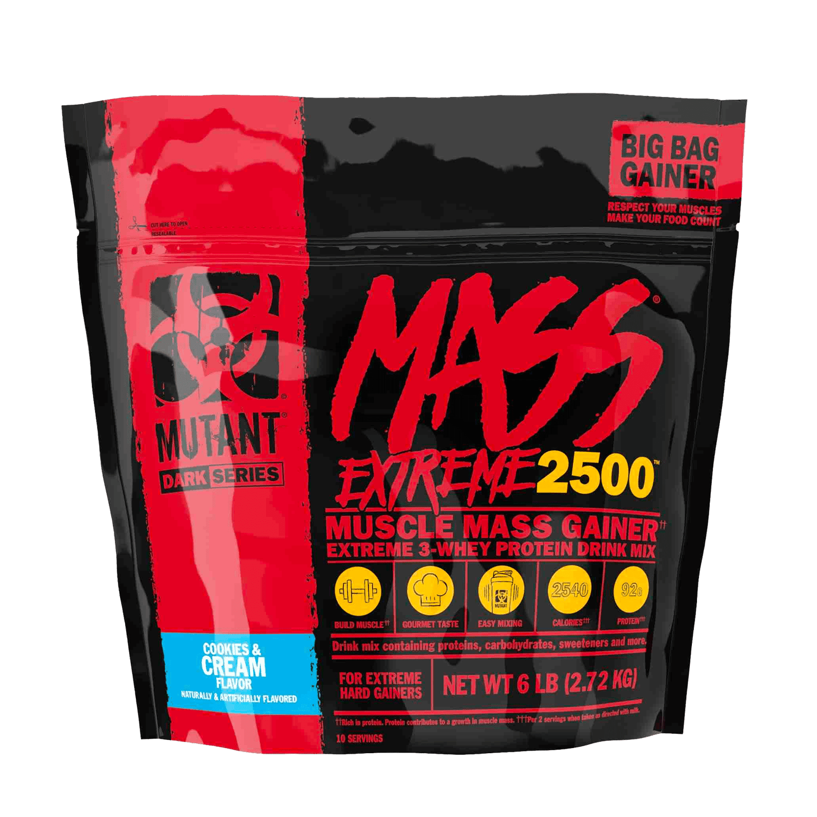Mutant Mass Extreme 2500 fue creado para ganadores extremadamente duros que simplemente no pueden ganar masa sin importar cuánto coman o cuánto entrenan. Aquellos con un metabolismo extremadamente rápido y un estilo de vida ajetreado necesitan calorías adicionales, pero tienen dificultades para comer lo suficiente para ganar músculo. Cada porción de Mutant Mass Extreme 2500 proporciona 1270 calorías, 46 gramos de proteína, 255 gramos de carbohidratos y 7.5 gramos de grasa saludable cuando se mezcla con solo dos tazas de leche al 1%. ¡Beba un batido después del entrenamiento y otro entre comidas o antes de acostarse para alimentar su cuerpo con 2.540 calorías adicionales por día!