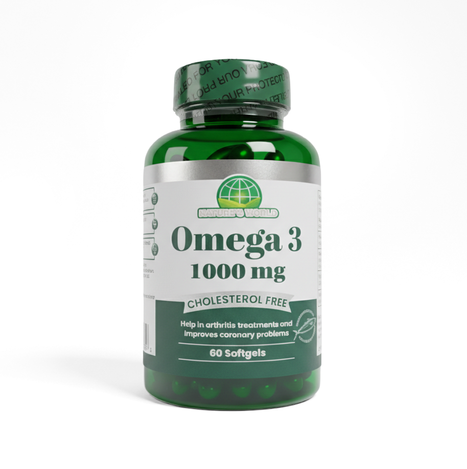 Nat World Omega 3 es un suplemento alimenticio diseñado para complementar la dieta diaria con ácidos grasos esenciales Omega 3. Cada softgel contiene 1000 mg de aceite de pescado, una fuente natural de EPA y DHA, nutrientes ampliamente utilizados en planes de bienestar y nutrición.