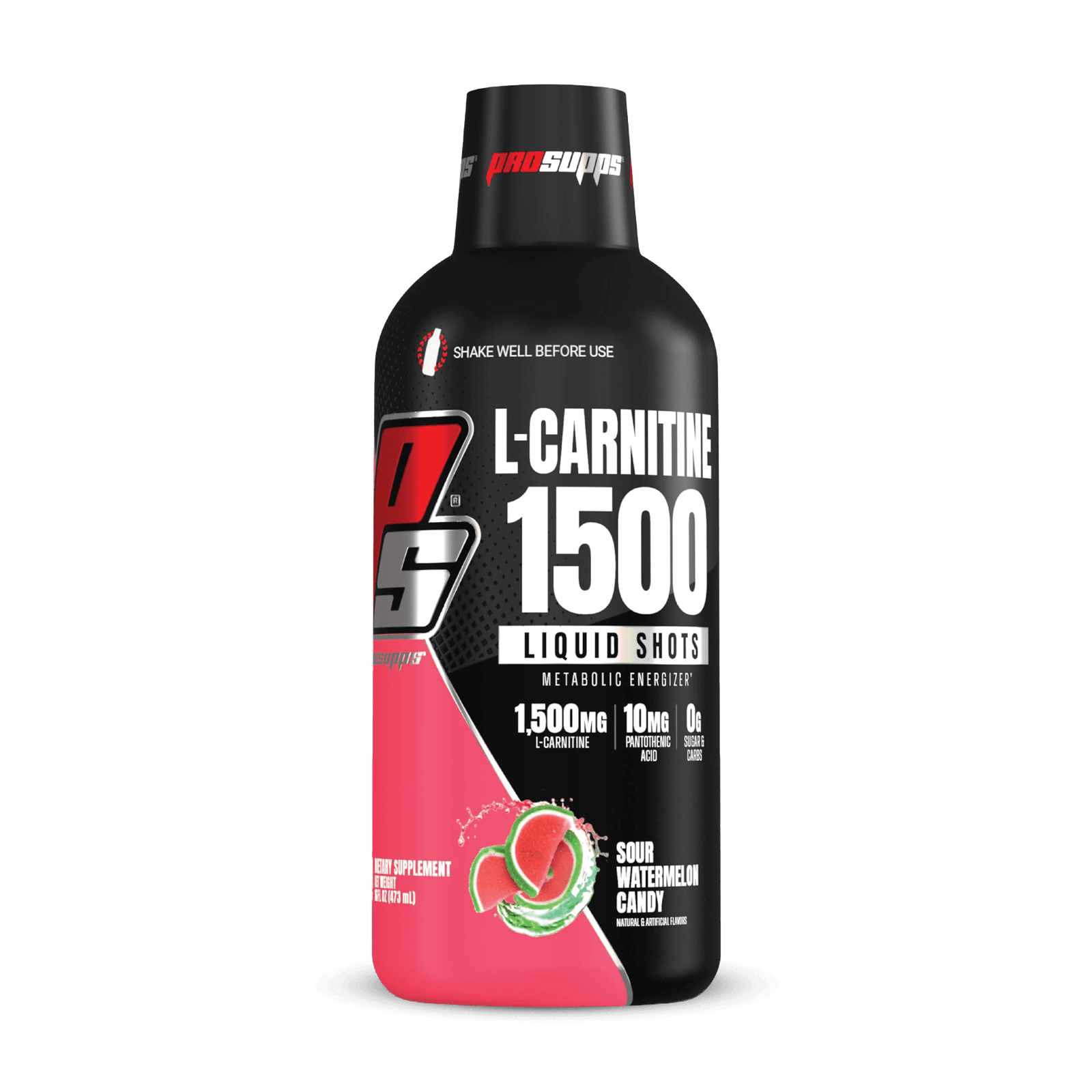 ProSupps L-Carnitine 1500 Liquid Shots, Berry, 16 oz (31 servings) es un suplemento líquido sin estimulantes con 1500 mg de L-Carnitina y 10 mg de ácido pantoténico por porción. Sin azúcar ni carbohidratos, promueve la conversión de grasa en energía, mejora el rendimiento físico y apoya la recuperación muscular. Su sabor a bayas es refrescante, ideal para tomar antes del ejercicio o durante el día.